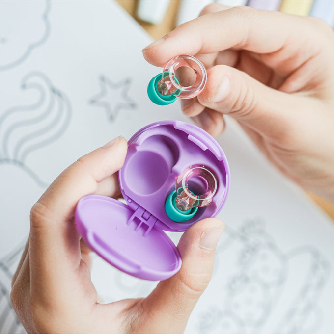 Loop Engage Kids use the same innovative technology as Loop Engage for adults, combining an acoustic channel and engineered filter to reduce the volume of sounds, without blocking them out or reducing the clarity of the wearer’s voice. But Loop Engage Kids come in special colors to give kids heaps of confidence, and they have a choice of interchangeable ear tip sizes from XXS-M (rather than our standard Loop Engage, which has earplugs that start at XS), to ensure the perfect fit for small ears.